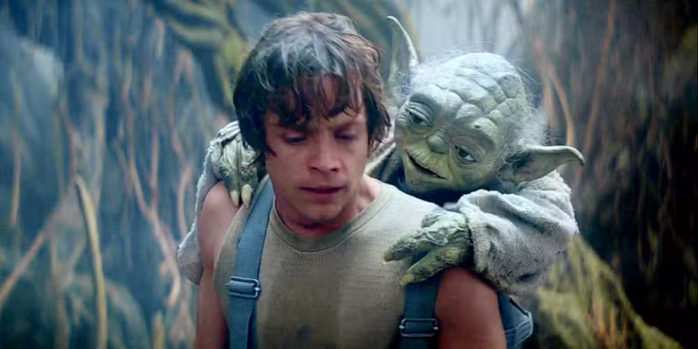 El imperio contraataca de alguna manera logra triunfar Una nueva esperanzay tiene un tono más oscuro que su predecesor, y dedica más tiempo a lo que significa ser un Jedi y la tentación de trabajar junto a Darth Vader. Empuja a los personajes a situaciones más peligrosas, como el entrenamiento de Luke, la captura de Han y la persecución de los héroes por parte de Vader.