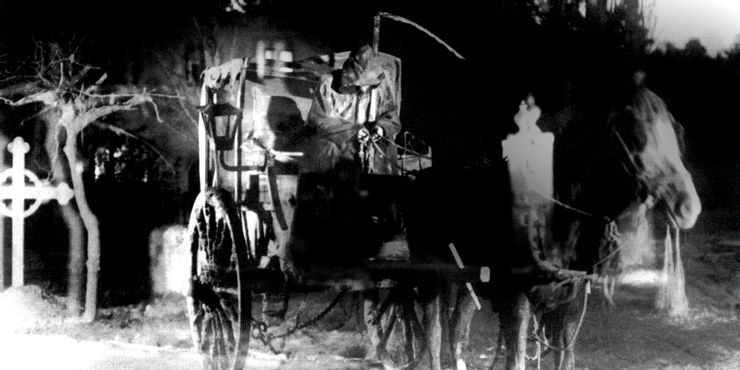 Lanzado en 1921, El carro fantasma es una fantasmagórica historia sueca de fantasmas dirigida por Victor Sjostrom. La trama sigue a un hombre borracho en la víspera de Año Nuevo que se sube a un carruaje de caballos espectral, que transporta las almas de los muertos. La película muda tiene que ver con evocar una atmósfera de mal humor con su brillante uso de luces y sombras.