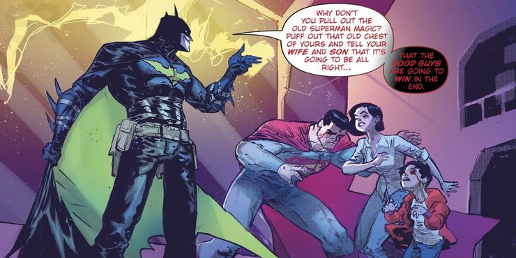 Debido a su historia, Superman no se contuvo, poniendo todo su poder detrás de derrotar a su enemigo… solo para que la toxina del miedo desapareciera, revelando que su verdadero oponente era Lois Lane, que había estado embarazada de su hijo por nacer. . Para colmo, el Joker hizo estallar Metrópolis, para demostrarle a Superman cuán verdaderamente había fallado y quitarle absolutamente todo.