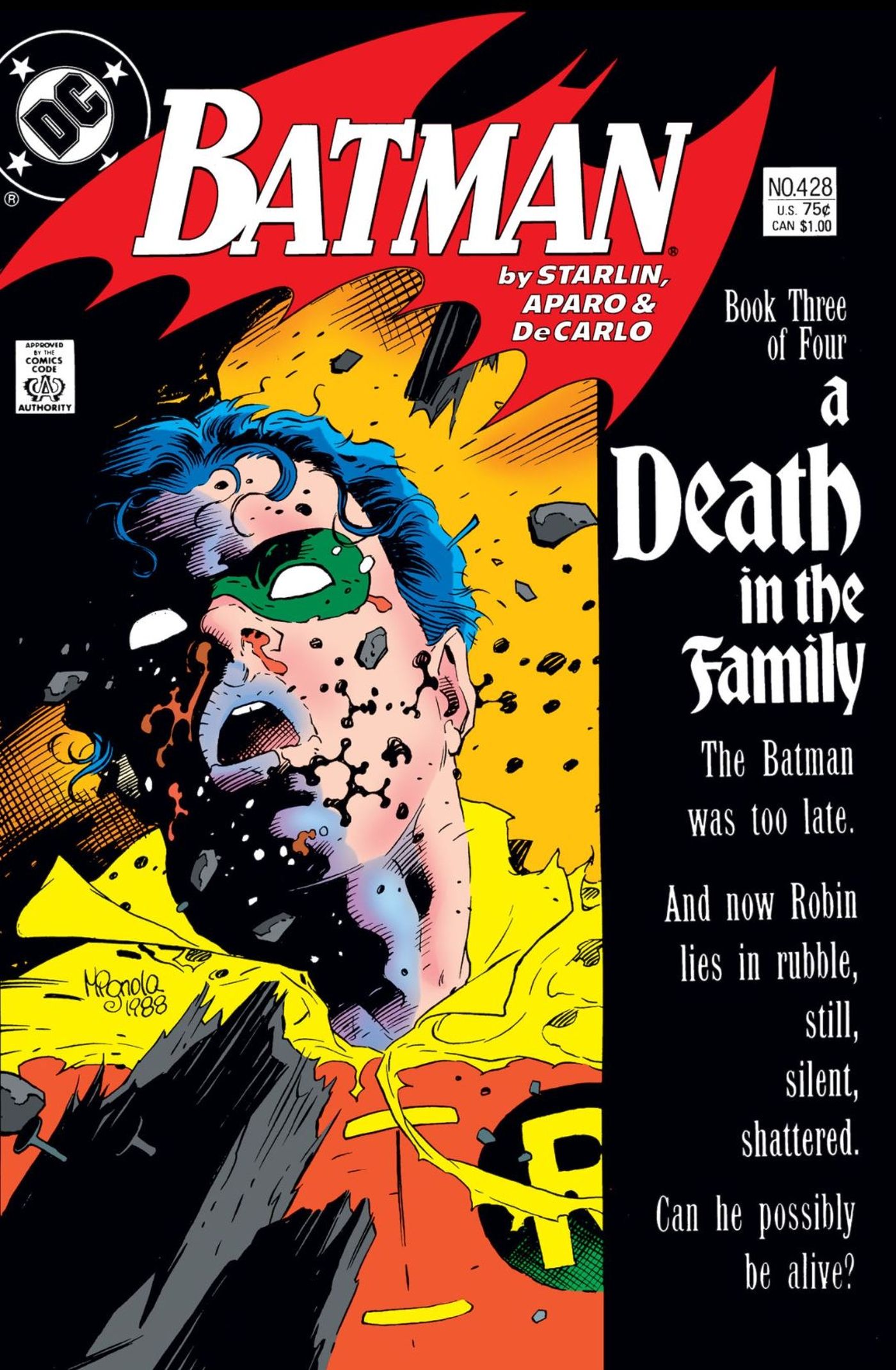 Desafortunadamente, una portada con el tema de Robin de un poco más de notoriedad es mucho más oscura que Cómics de detectives #38. ordenanza #428 es la tercera parte del infame arco narrativo “Death in the Family” y el problema que siguió al infame truco de la línea directa de DC para votar si Jason Todd debería vivir o morir. Desafortunadamente, la portada de Mike Mignola y Anthony Tollin les dice a los fanáticos exactamente cómo se desarrolló la votación y que el segundo Robin estaba muerto. DC Comics no solo permitió a los lectores opinar sobre la muerte de un personaje, sino que también permitió una portada que mostraba los resultados brutales de su controvertido truco.