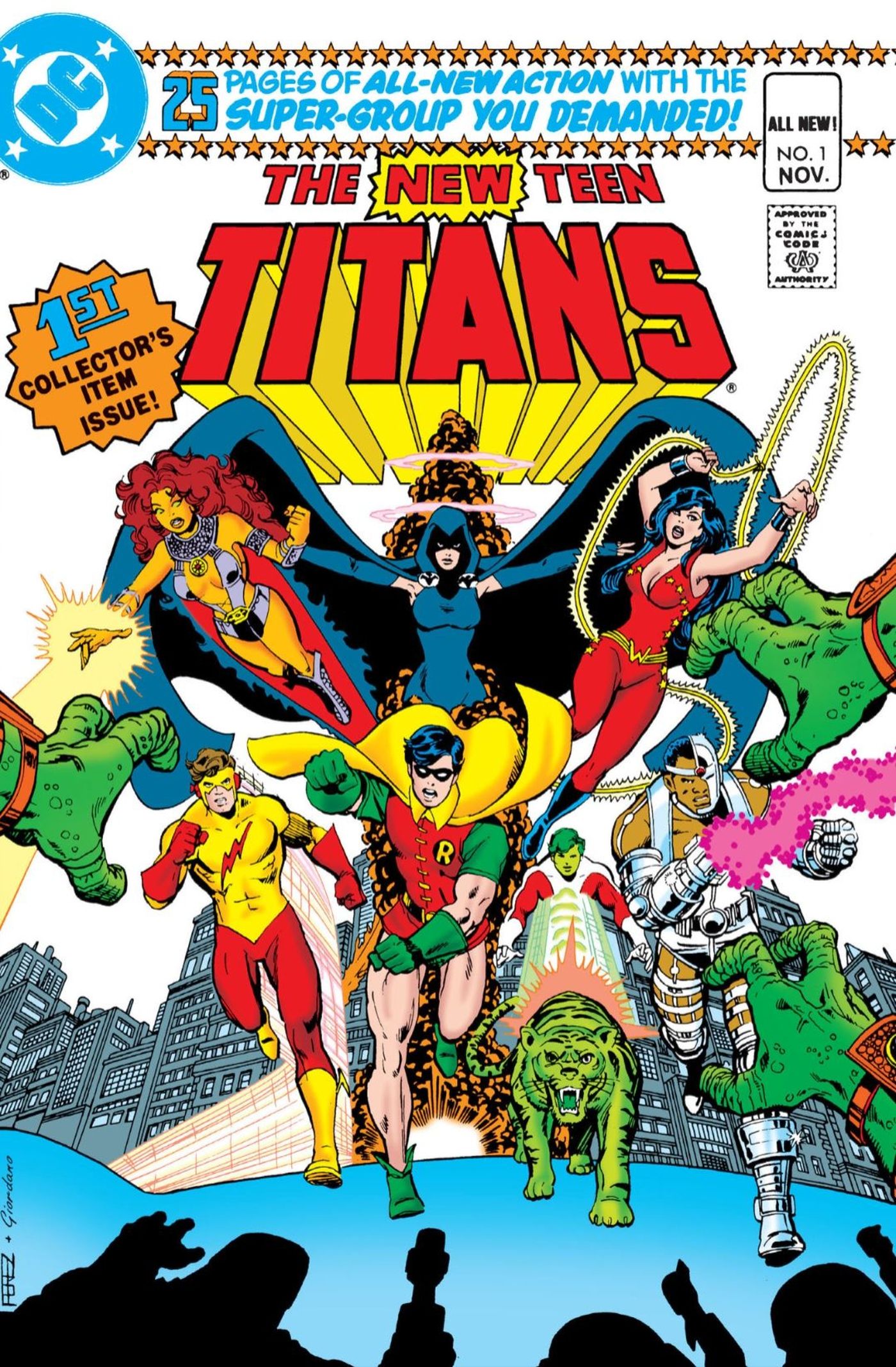 Si hay una portada de DC Comics que realmente define una era, es la portada de Nuevos Jóvenes Titanes #1 de George Pérez y Dick Giordano. La portada muestra a varios miembros clásicos de los Teen Titans como Robin, Kid Flash y Wonder Girl luchando junto a los recién llegados Starfire, Cyborg y Raven. Es una combinación fantástica de lo nuevo y lo antiguo que informa a los lectores que este no es el equipo de los Titanes que la gente recuerda, sino un nuevo equipo listo para hacerse cargo. la portada de Nuevos Jóvenes Titanes #1 es sin duda una de las imágenes más fuertes que los fans tienen de el saga que presenta la próxima generación de héroes de DC.