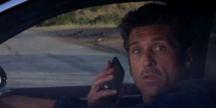 Anteriormente en el episodio menciona que no tiene servicio y que su teléfono no funciona. Sin embargo, todavía puede recibir llamadas. Además, Derek elige detenerse con el automóvil estirado horizontalmente sobre dos carriles. Es un poco desconcertante que Derek, un muy popular Anatomía de Grey personaje, obtiene una recepción mágica, responde una llamada con un automóvil en una posición extraña e ilegal y muere.
