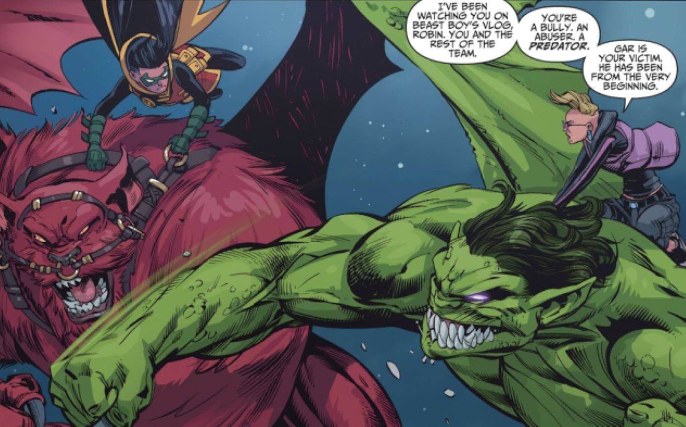 El control mental es difícil de combatir, especialmente cuando la persona controlada puede transformarse en cualquier bestia que pueda imaginar. En Jóvenes Titanes #19 – por Benjamin Percy, Scot Eaton y Wayne Faucher – Chico Bestia se vuelve casi imparable cuando el infame Titiritero se apodera de su mente. Bajo el control de Titiritero, lucha con Damien Wayne y su Gárgola, Goliat. Afortunadamente, a través de las palabras de Will y Damien, Chico Bestia pudo liberarse del control del Titiritero, pero no antes de que Chico Bestia pudiera derrotar a Damien y luchar contra su mascota del cielo en un enfrentamiento épico con las Gárgolas.