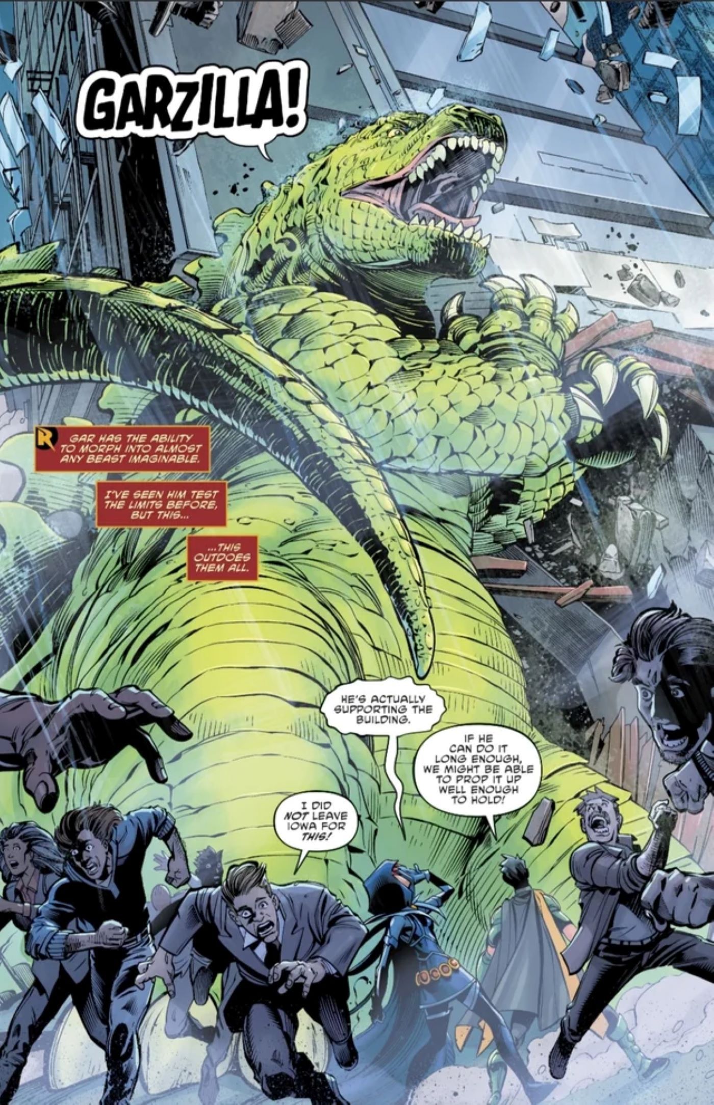Una de las transformaciones más icónicas, poderosas y amenazantes de Chico Bestia es su forma verde de Tiranosaurio Rex. Conocimos el verdadero poder de esta bestia prehistórica en Titanes queman rabia #6 – escrito por Dan Jurgens – que mostraba a Chico Bestia convirtiéndose en un dinosaurio controlado mentalmente. Mento tomó el control de la mente de Chico Bestia, haciéndole pensar que todos los Jóvenes Titanes estaban muertos. Fueron necesarios los esfuerzos combinados de los Jóvenes Titanes, junto con Dove y Hawk, para finalmente noquear a Chico Bestia. De esta forma, podía destrozar edificios, masticar acero y destrozar el suelo bajo sus pies. Que Tyrannosaurus Rex Beast Boy finalmente quede tan bajo en este ranking es un testimonio de la ferocidad y el poder de las formas que ha logrado a lo largo de los años.