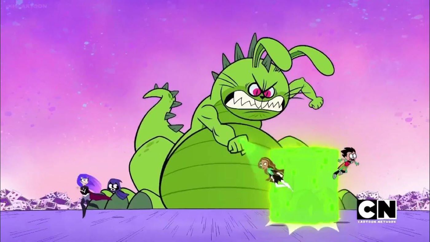 El avance del joven titán muestra el equipo original, pero amplían los límites de una manera que el anterior Jóvenes titanes la serie no lo hizo. Estos incluyen cameos de la Liga de la Justicia, versiones diferentes dimensionales de ellos mismos e incluso romper la cuarta pared. En el episodio “Space House – Part 2”, Chico Bestia se obsesiona con el Anillo de Poder de Linterna Verde. Chico Bestia se pone el anillo y se convierte en un híbrido Dragón/Conejo/Dino con los poderes de un Linterna Verde. Si bien su imaginación solo podía evocar un Tater Tot, aun así se necesitaron los esfuerzos combinados de Zatana, Robin, Raven y Green Lantern para detenerlo.