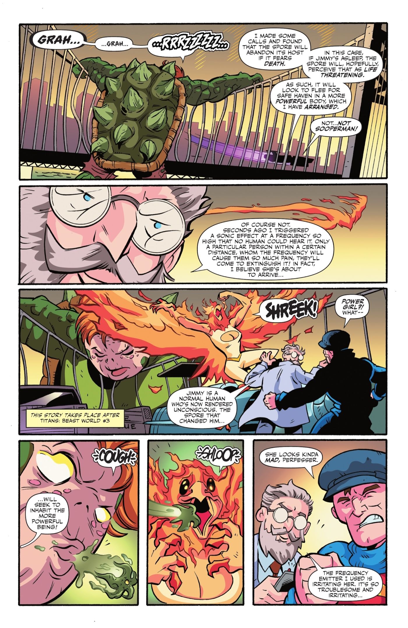“/> Nadie está a salvo de las esporas de la Bestia, ya que incluso un personaje tan poderoso como Power Girl puede resultar infectado. Pero a diferencia de otros personajes que simplemente se convierten en formas bestiales, Power Girls está profundamente ligada a su cultura. La sorprendente nueva forma de Power Girl se muestra por primera vez en el Titanes: Beast World Tour: Metrópolis historia “Turtle Boy” de Dan Jurgens, Anthony Marques, Joe Prado, Wade Von Grawbadger, Pete Pantazis y Dave Sharpe. Esta transformación revela a Power Girl como un Flamebird literal. Una de las partes principales de la cultura kryptoniana fue la leyenda de Nightwing y Flamebird, dos héroes kryptonianos. Flamebird es una identidad que han usado varios héroes del Universo DC, pero Power Girl es la primera en adoptar esa forma de manera bastante literal, lo cual es apropiado considerando lo importante que es para su planeta de origen.
