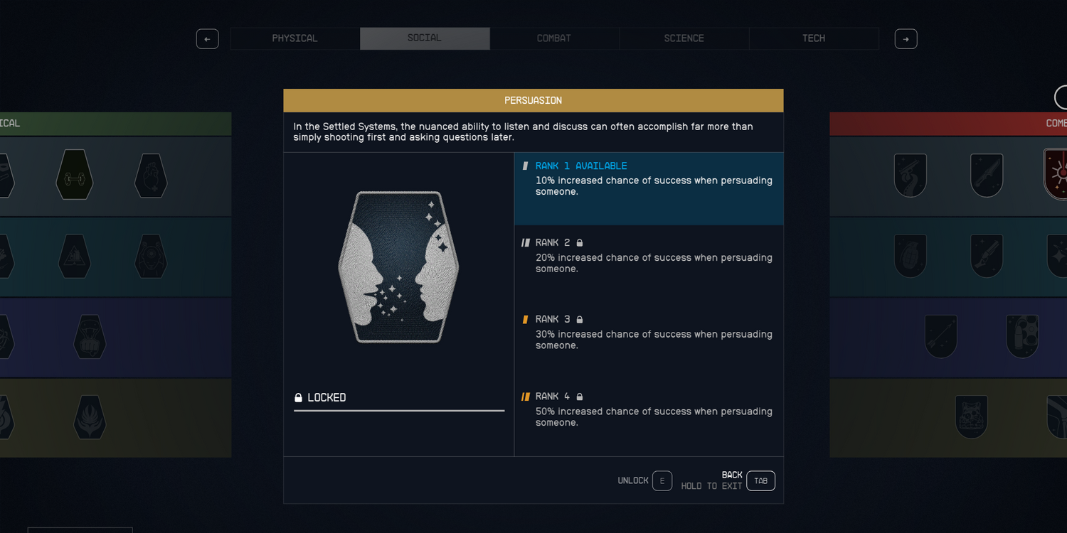La persuasión y la intimidación son poderosas. Beneficios sociales que hacen más o menos lo mismo pero de formas ligeramente diferentes. La persuasión suele ser más útil para permitirte hablar para salir de malas situaciones, pero poder intimidar a un NPC para que huya también puede ser útil. De cualquier manera, estas ventajas te permitirán manipular a los NPC que te rodean para sortear el combate. Es posible conseguir ambas cosas, como lo es la Persuasión. Tier 1 y la intimidación es El nivel 2.