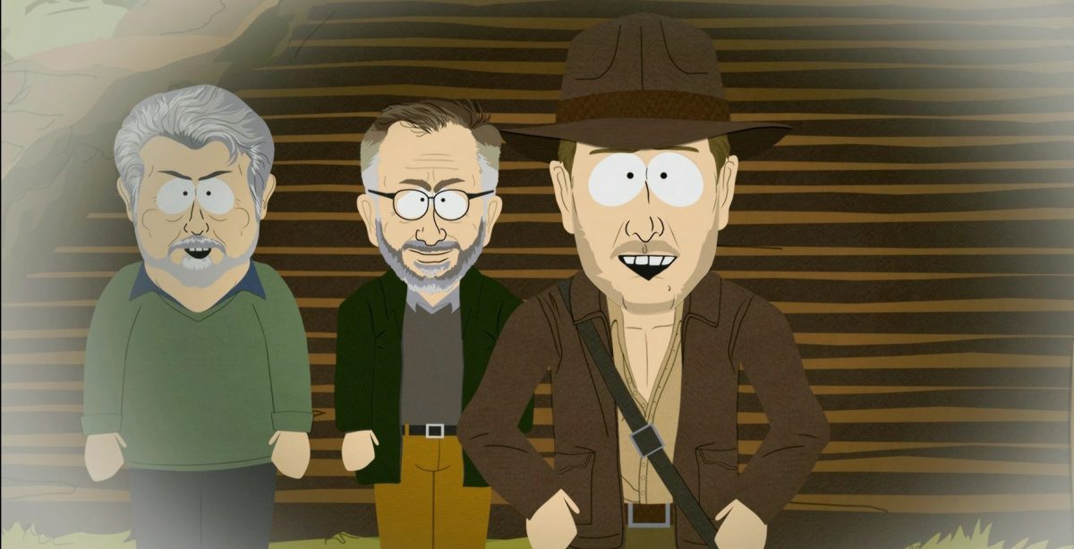 parque del SurEs la parodia de Indiana Jones y el reino de la calavera de cristal Es realmente una parodia de ambos. Liberación y El acusado. Después de que los chicos vean lo último. Indy Película, con todos sus monos CGI y invasores alienígenas, hacen la atrevida afirmación de que George Lucas y Steven Spielberg han arruinado a Indiana Jones.