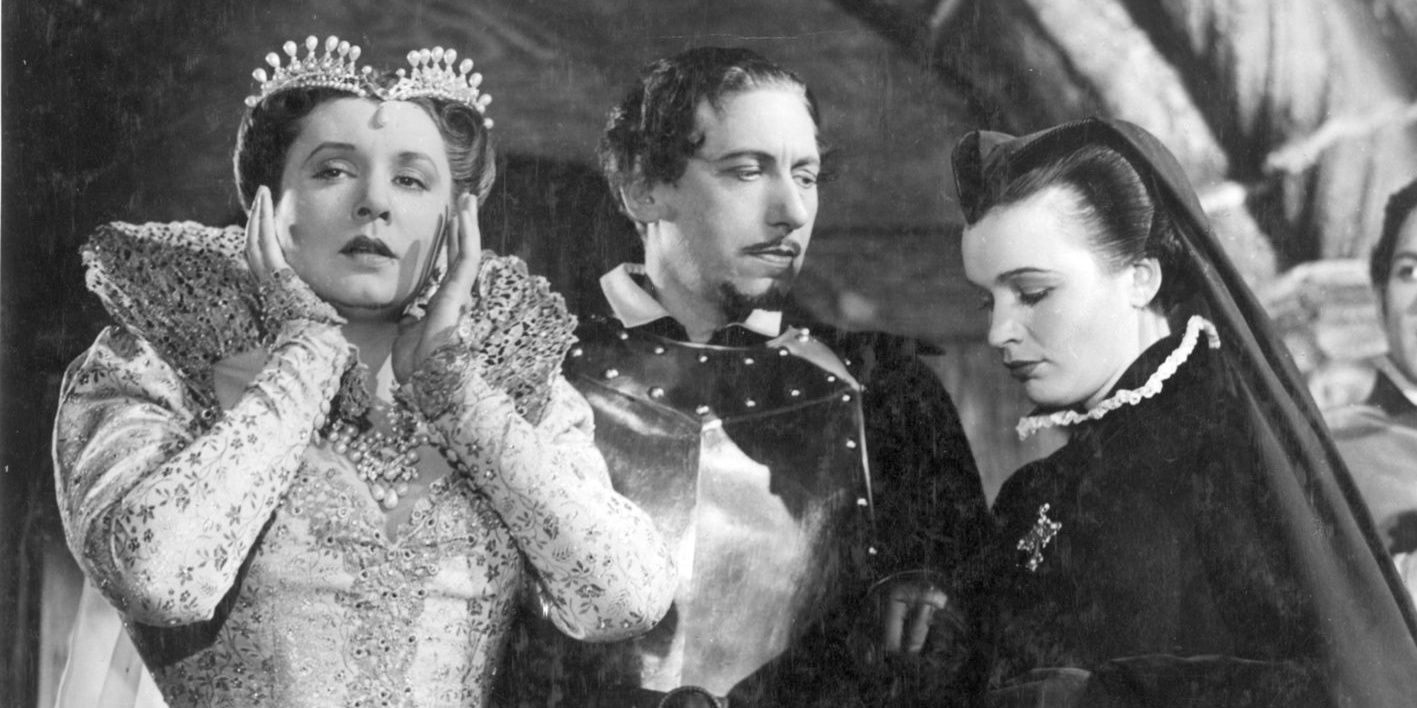María de Escocia es una película de 1936 que sigue a María, reina de Escocia, en su regreso a su tierra natal celta. Como ocurre con la mayoría de las películas sobre Mary Queen of Scots, esta cuenta que ella renunció a su trono y solicitó ayuda a la reina Isabel I, quien la encierra en la Torre de Londres por temor a perder su propio trono. Katharine Hepburn interpreta a María, reina de Escocia, mientras que Florence Eldridge es Isabel Tudor, reina de Inglaterra. Ambas actrices tienen la velocidad teatral necesaria para representar a líderes femeninas tan fuertes en la pantalla, y el vestuario que cada mujer usó fue tentador contra el esquema de color en blanco y negro de la película.