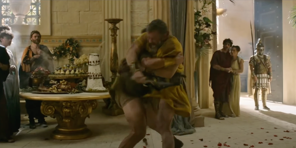 Después de un minuto de pelea, el luchador de Thraex obtiene la ventaja contra Lucius después de recuperar su cuchilla. Sin embargo, Lucius finalmente puede recuperar la daga, apuñalando al gladiador en el cofre. En una película dominada por piezas y batallas de set masivas de CGI, Esta pelea es un descanso bien necesario del caos que aún demuestra la crueldad del liderazgo de Roma.