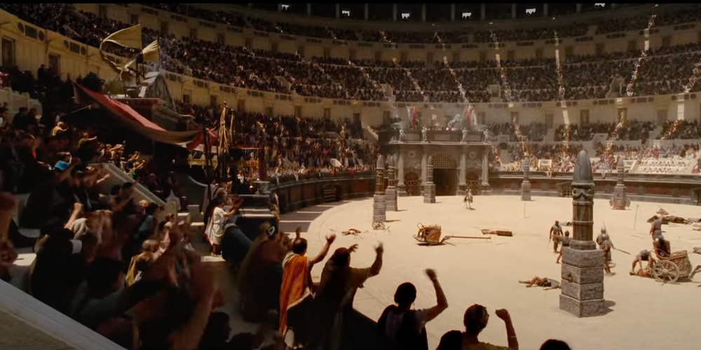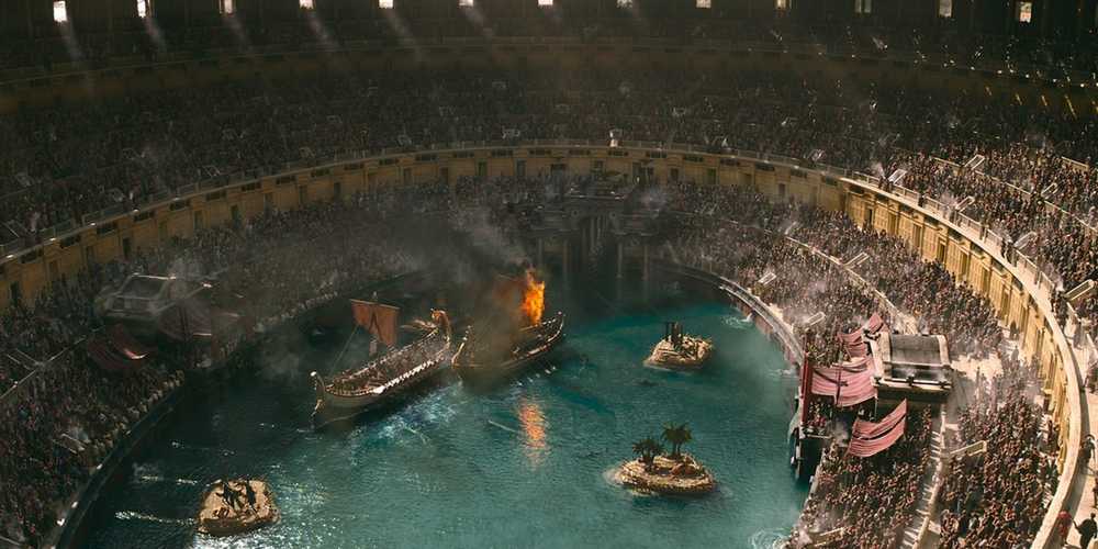 Después de que los arqueros encienden sus velas en llamas con flechas ardientes, Lucius y su equipo de gladiadores se ven obligados a maniobrar alrededor del barco opuestosuperando sus voleas después de embestir el barco enemigo en el costado del Coliseo. A partir de ahí, Lucius y sus gladiadores abordan el accidente, atacando brutalmente a sus enemigos en una de las muestras de violencia más salvajes de la franquicia.