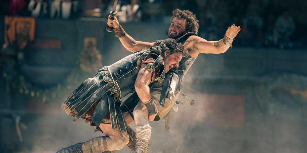 Una de las peleas más íntimas en Gladiador II ocurre cuando Lucius se enfrenta al luchador del senador Thraex (Tim McInnerny) en presencia de Emperadores Geta (Joseph Quinn) y Caracalla (Fred Hechinger), con este último dando el orden de “No hay trimestre” Aunque Lucius inicialmente duda en luchar contra el gladiador, finalmente cedeincluso usando sus puños y un jarrón para dominar al hombre.