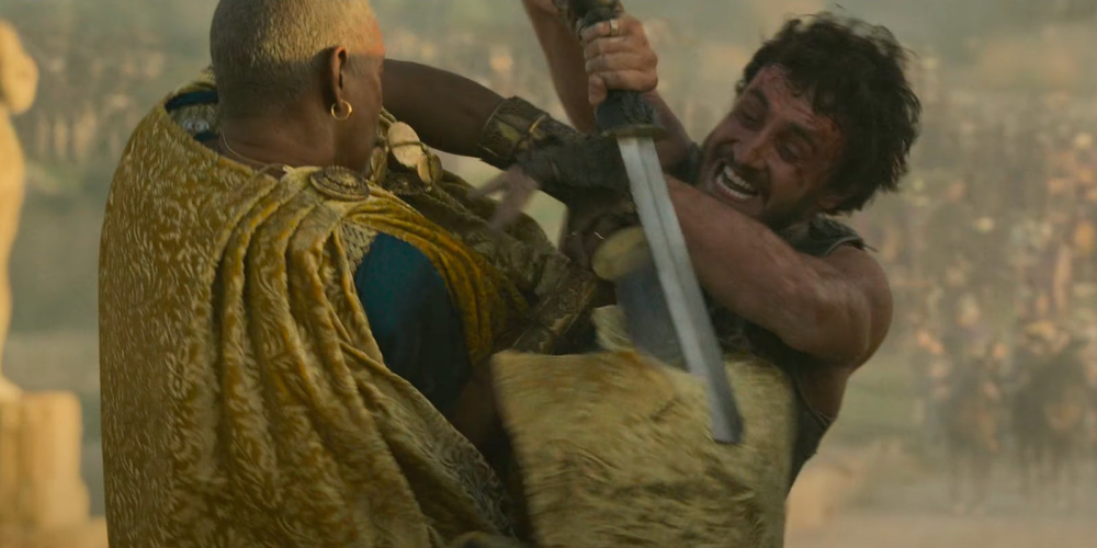 Del mismo modo, el duelo más satisfactorio de Gladiador II Llega al clímax de la película cuando los ejércitos de Acacius y Macrinus están a punto de enfrentarse entre sí en las afueras de Roma antes Lucius y Macrinus comienzan un duelo destinado a determinar el futuro del imperio.