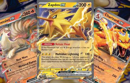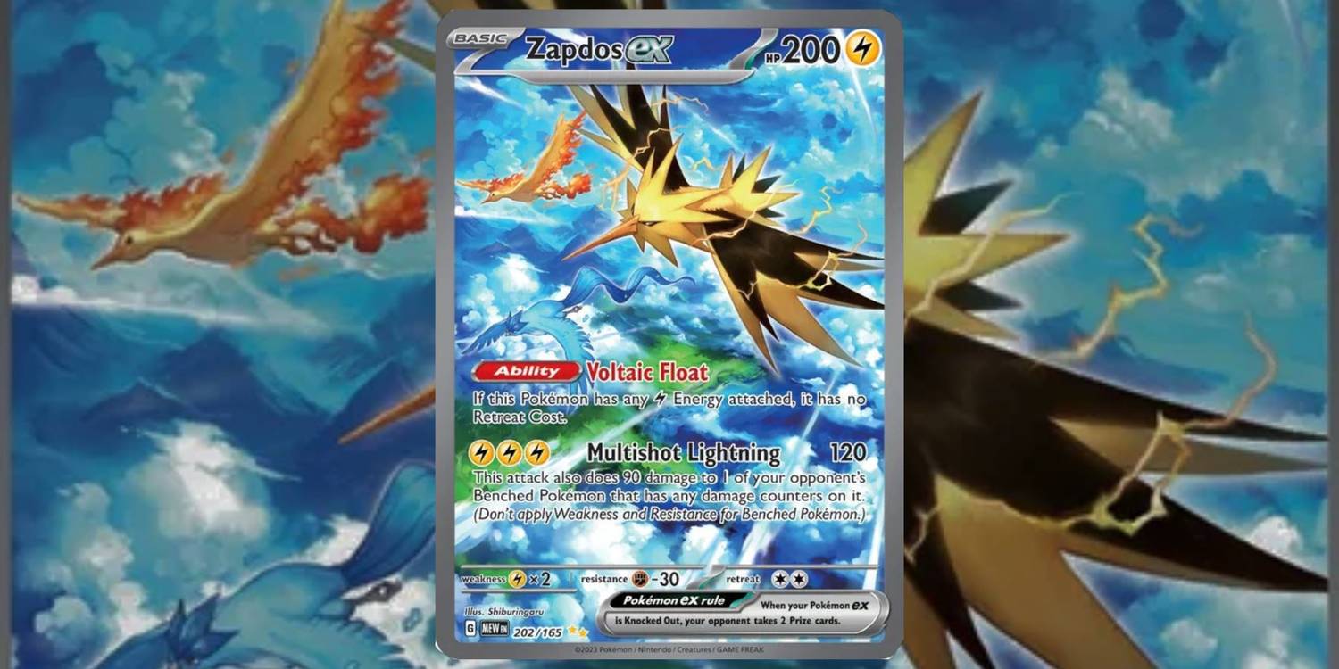 La tarjeta rara de ilustración especial de Zapdos ex muestra sutiles destellos de Articuno y Moltres volando con ella en el fondo mientras carga hacia adelante. Esta poderosa carta es útil en el juego con su Multishot Lightning. y también es un coleccionable vibrante con ilustraciones completas de Shiburingaru. Al momento de escribir este artículo, esta tarjeta figura en TCGPlayer con un precio de mercado de $36.78 USD.