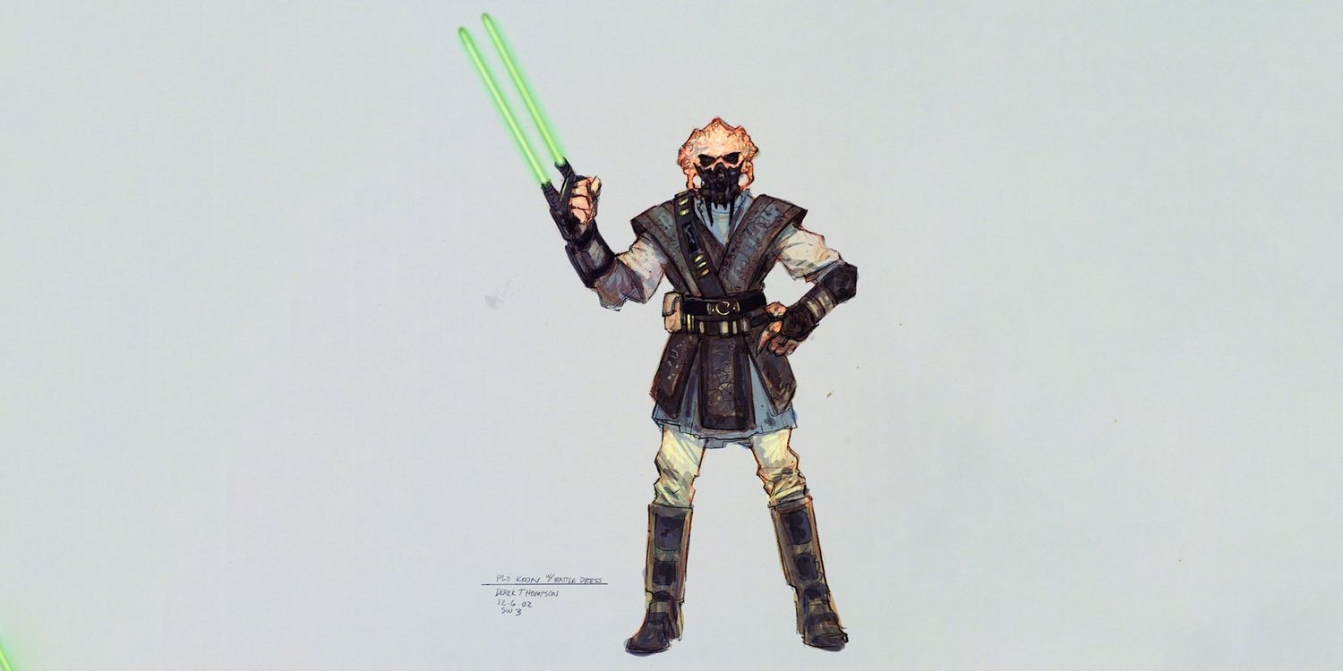 Quizás uno de los diseños de sables de luz más oscuros de todos los tiempos, el sable de luz tipo guantelete de Plo Koon solo apareció una vez en el arte conceptual de Derek Thompson para Star Wars: Episodio III – La venganza de los Sith. Este diseño único era menos una empuñadura y más una muñequera, con dos pequeños sables de luz verdes que sobresalían de cada lado, un poco que recuerda a las garras de Wolverine. Por ahora, este diseño de empuñadura aún no se ha utilizado en Guerra de las Galaxias.