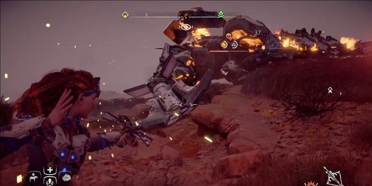 Las hondas parecen armas tontas en comparación con usar algo como un arco. Sin embargo, horizonte cero amanecer asegura que estas armas se mantengan firmes en comparación con el resto del arsenal estelar del juego, el mayor de los cuales es su impresionante daño por explosión. Las hondas se pueden usar para colocar bombas en las máquinas, lo que causa un daño masivo y puede hacer que se tambaleen.