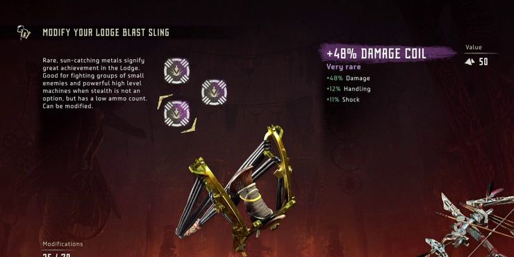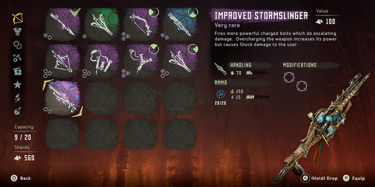 Su forma estándar es fuerte y robusta, pero completar la misión secundaria de Varga recompensa al jugador con el Stormslinger mejorado. El arma no solo se ve mucho más amenazante, sino que es mucho más potente, capaz de reducir la salud de las máquinas con solo unos pocos disparos. Si bien está más orientado al combate a distancia, es lo suficientemente poderoso como para que no haga una gran diferencia.