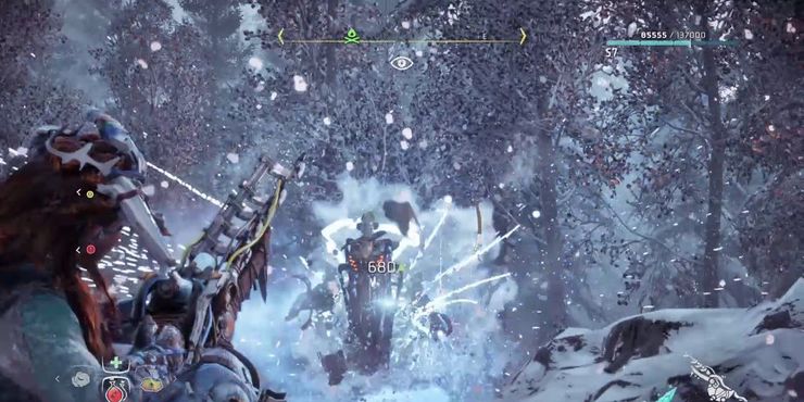 Los bosques congelados fue la expansión DLC a horizonte cero amanecer, brindando una nueva área para que los jugadores exploren junto con máquinas demoníacas que eran más fuertes que las máquinas corruptas del juego base. Para compensar este pico de dificultad, el juego presenta algunas armas nuevas que brindan a los jugadores una ventaja en esta nueva ubicación.