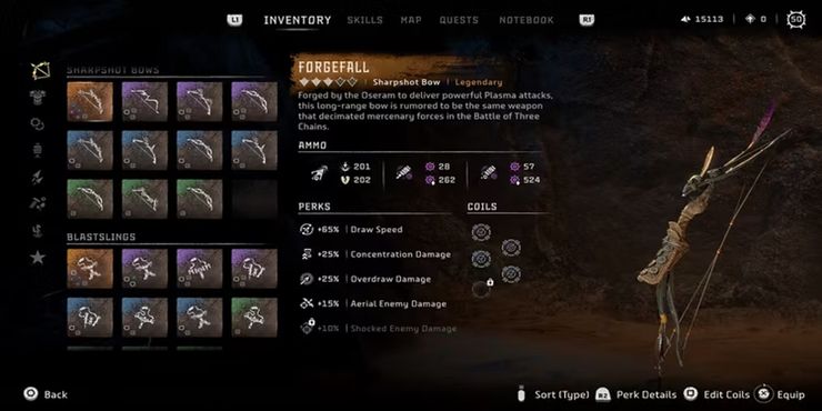 Horizonte Prohibido Oeste se trata menos de la fuerza bruta del armamento de Aloy y más de las diversas opciones de carga y combinaciones que se le ofrecen al jugador. Sea como fuere, Forgefall es un arco imprescindible que brilla en encuentros de largo alcance, y su amplio daño de plasma y sus habilidades para perforar armaduras lo hacen ideal para luchar contra algunas de las máquinas más grandes del juego.