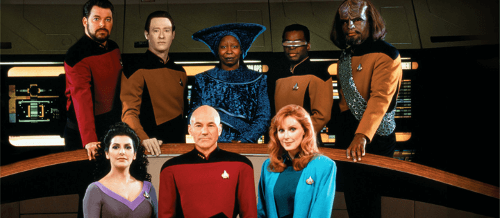 Memes listos, es Patrick Stewart como el icónico Jean-Luc Picard y su tripulación del USS Enterprise-D en Star Trek: la próxima generación. La serie duró 7 temporadas desde 1987 hasta 1994, sin mencionar otras 4 películas con La próxima generación El elenco apareció de 1994 a 2002.