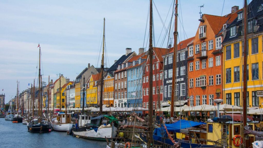 En Copenhague, la capital de Dinamarca, el Puerto Nuevo es uno de los lugares más bonitos que ver. Es un paseo marítimo y zona de ocio que alberga un gran número de bares y restaurantes.