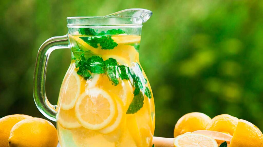 El limón y su toque ácido la convierten en una de las frutas perfectas para refrescarnos en los momentos más calurosos. Solo necesitas exprimir dos limones a un litro de agua. Puedes añadir un poco de azúcar, o si lo prefieres un poco de sal marina y bicarbonato. De esta forma recuperarás lo que tu organismo ha expulsado por el calor.