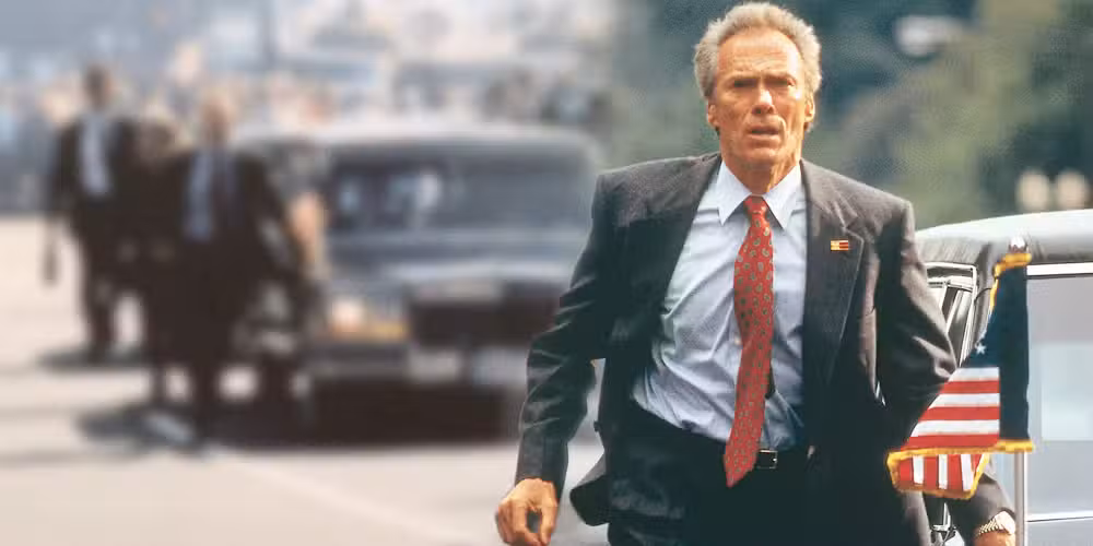 Este thriller de 1993 de Wolfgang Petersen presentó a Eastwood como un agente veterano del Servicio Secreto encargado de encontrar a un asesino que tiene como objetivo al presidente. En la línea de fuego rápidamente promete un tipo diferente de película de acción, como lo demuestra una escena inicial en la que Frank de Clint lucha por mantener el ritmo corriendo junto a la limusina del presidente.