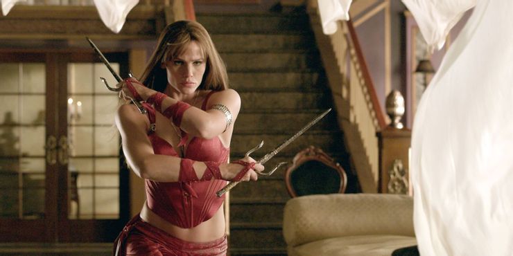 Esta es una película de Marvel que salió antes del gran éxito del Universo Cinematográfico de Marvel. Es un derivado de la película de 2003, Temerario, y Garner repite su papel de esa película como Elektra Natchios. Garner estaba legalmente obligada a hacer la película debido a obligaciones contractuales, y tuvo que ser filmada durante su pausa de Alias.