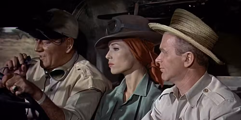 Lanzado en 1962, ¡Peligro! era una película rara de John Wayne. Si bien era conocido sobre todo por sus westerns y películas de guerra, con algún drama ocasional, ¡Peligro! Era una película de comedia romántica de aventuras. Wayne interpreta a Sean Mercer, el líder de los receptores profesionales en África.