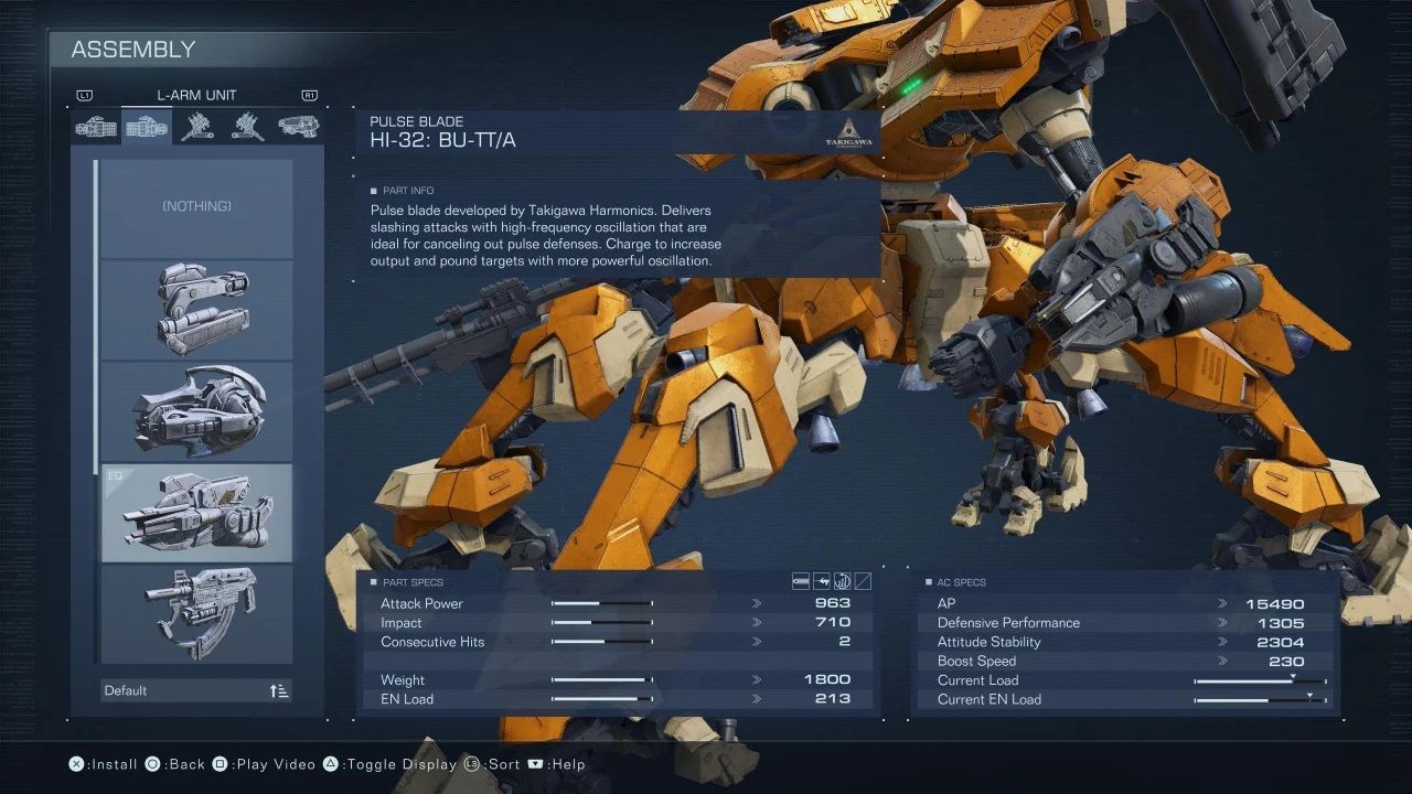 “/> La Pulse Blade es otra de las armas iniciales del primer capítulo. Al igual que el Pile Bunker, puedes utilizar el HI-32 BU-TT/A durante todo el juego. Su daño confiable y equilibrado puede proporcionar una ventaja al participar en Núcleo 6 blindado PvP en línea. Incluso se puede utilizar como base para una construcción completa centrada en el cuerpo a cuerpo, utilizando dos armas en las ranuras de la mano izquierda y del hombro izquierdo.