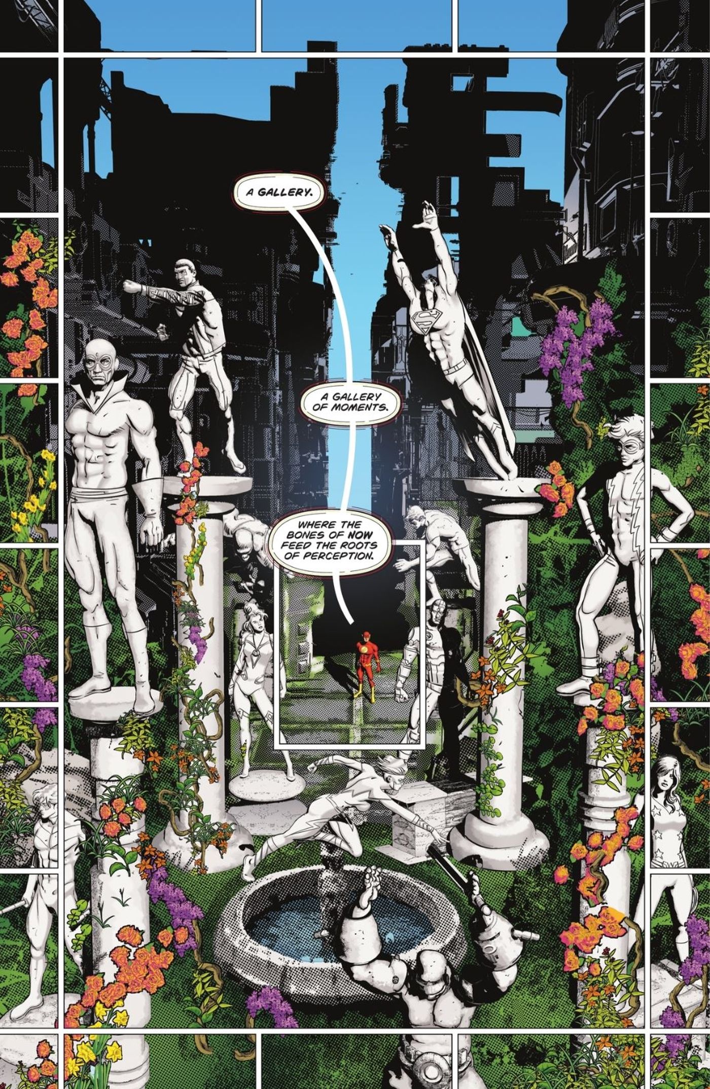 “/> El viejo enemigo de Flash, el Hombre Plegado, arrastra a Wally y Max a una capa que encarna la ley natural similar al Verde y al Rojo. Otro parece ser un reino espeluznante del que los velocistas no pueden escapar. El Hombre Plegado se encuentra en el nivel más bajo, un vacío blanco. Pero Wally baja un peldaño hasta llegar a un estado sereno y capa tranquila que llama la Galería de Momentos.