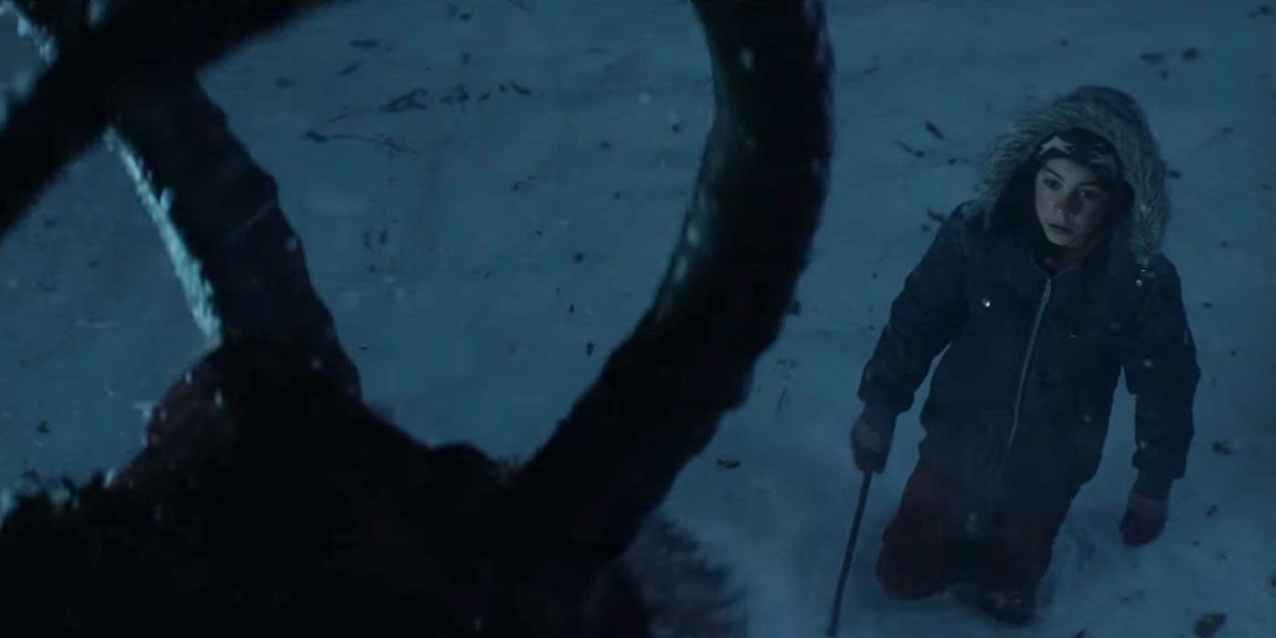 El entorno oscuro, gris y, a menudo, nublado aumenta el terror al crear el entorno perfecto para que entidades oscuras acechen en las sombras. El escenario se vuelve aún más inquietante por la inclusión de medias rojas que se encuentran sobre una chimenea lúgubre y un árbol de Navidad. Eso parece extrañamente sombrío en la casa encantada de los Hodges. En lugar de disfrutar de los sentimientos de unión que vienen con las vacaciones, los Hodges deben enfrentarse a Valak, el principal antagonista de El conjuro Universo. Esta entidad demoníaca anuncia su presencia en la banda sonora de la película con una interpretación espeluznante de la canción navideña, “Hark! The Herald Angels Sing”.
