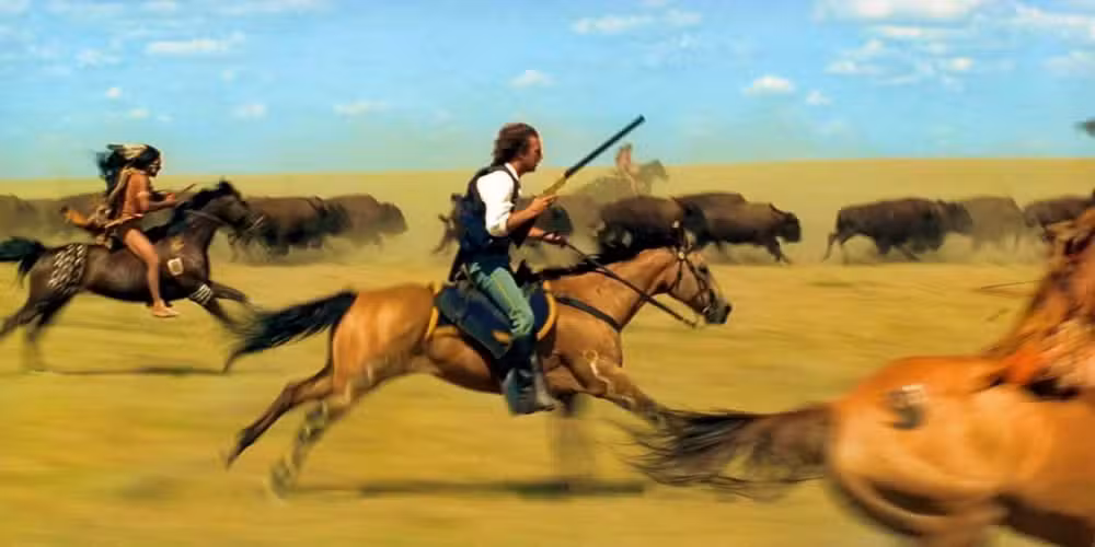 No es muy divertido ver cómo matan a tiros a los animales, pero no sólo es emocionante la puesta en escena de la caza del búfalo, sino que es una parte clave para que Dunbar sea aceptado en la tribu. Kevin Costner se da a sí mismo una oportunidad literal de héroe en el clímax, donde tiene que disparar con cuidado a un búfalo antes de que se abalanza contra un niño.