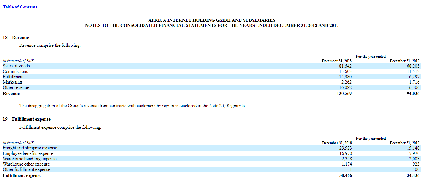 Sobre las perspectivas de la rentabilidad de Jumia, dos cosas a tener en cuenta serán los gastos de cumplimiento de Jumia y el cambio a más ingresos de sus servicios de no entrega de bienes, que ofrecen costos unitarios y márgenes más altos. El índice SEC F-1 de Jumia (ver más arriba), el flete y el envío representan más de la mitad de sus gastos de cumplimiento.