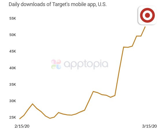 De hecho, la aplicación Target también ha batido récords de descargas diarias, según el informe. El domingo, la aplicación de Target vio más de 53,100 descargas diarias cuando hace un mes, estaba viendo más de 25,000.