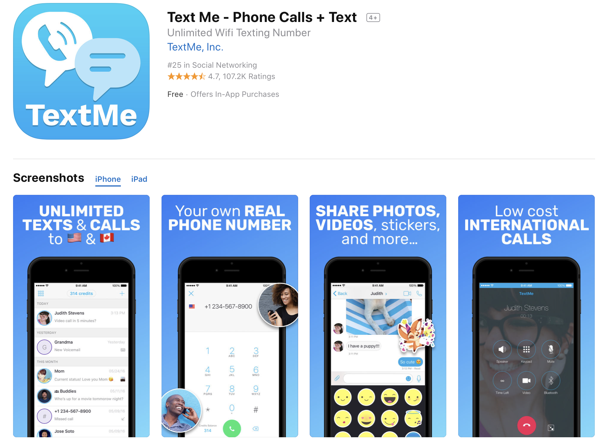 Como puede ver en el sitio web de la compañía, TextMe actualmente opera tres aplicaciones y está abierto al respecto: TextMe Up, TextMe y FreeTone. Estas tres aplicaciones tienen un promedio de 4.7 estrellas en la App Store con cientos de miles de reseñas en total.