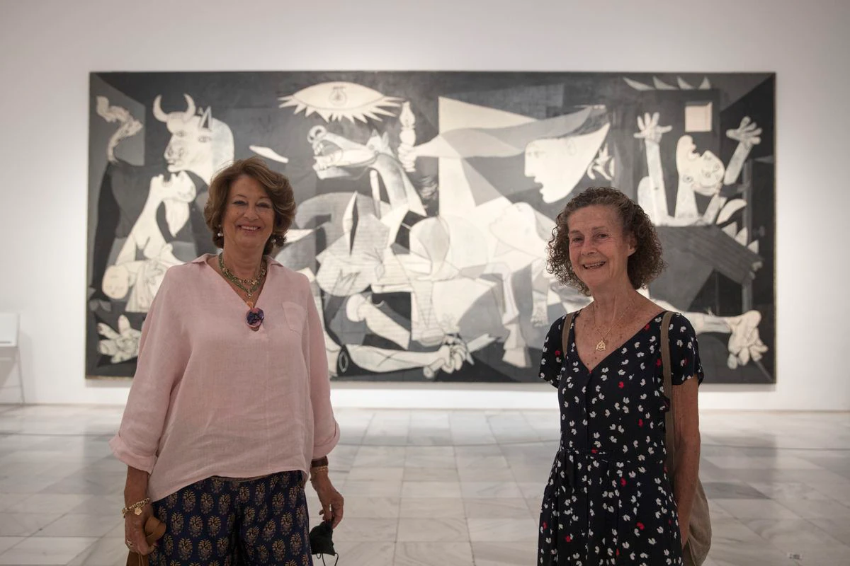 El cuadro se instaló al principio en el Casón del Buen Retiro. Hay una foto icónica en la que la pintura aparece detrás de un cristal blindado, custodiada, los primeros días, por un guardia civil armado. Después, poco a poco, la vida de todos giró hacia la normalidad. El Guernica se trasladó en 1992 al Museo Reina Sofía y ya se expuso sin cristal protector. La azafata Beatriz Ganuza, para estar más cerca de su familia, se jubiló a los 55 años, acogiéndose a una prerrogativa de la compañía. Elena Almazán, de espíritu más viajero e inconformista, aguantó volando por el mundo hasta que Iberia la obligó a retirarse. Aún guarda en su casa un bolso de azafata y el estiloso y colorista uniforme que el diseñador Elio Berhanyer concibió para las auxiliares de vuelo en los años setenta. Ayer, las dos con 78 años, visitaron emocionadas el cuadro que viajó con ellas en la bodega del Boeing 747 hace cuatro décadas.