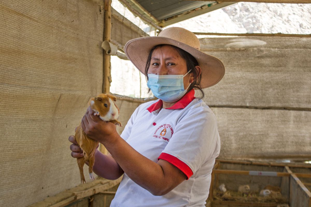 Con el proyecto, mejoraron la infraestructura, aprendieron nuevas técnicas para cuidar y sacrificar a sus cuyes, y llegaron a mercados más exigentes en Lima. En eso estaban hasta que Perú decretó una estricta cuarentena para contener la pandemia. “La comunidad se cerró, nadie podía entrar ni salir a comprar todos los alimentos de los animales. Solo pasaba un camión cada 15 días con nuestros encargos”, recuerda la presidenta.