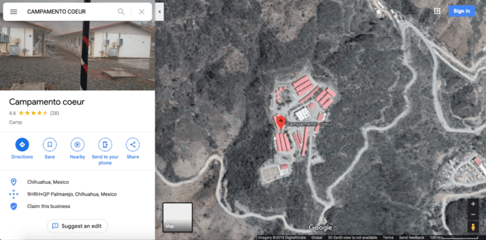 En El Universal se publicó que El Larry se escondía en la mina de Palmarejo, explotada por la empresa Coeur Mining. La empresa no respondió a las solicitudes de entrevista para esta investigación. ESPECIAL / Google Maps.