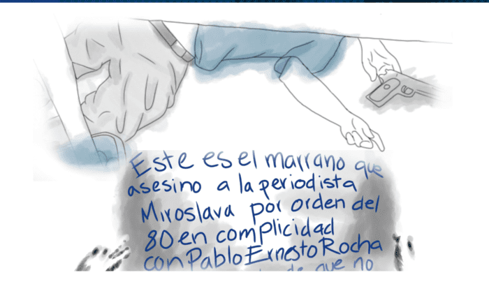 La teoría que compartió un fiscal a este colectivo era que los asesinos, al saberse ubicados, mataron al profesor para despistar. Sostuvo que al profesor lo asesinaron con un arma de calibre distinto a la que le “sembraron” junto al cuerpo. Y que esta arma de colección con grabado de Zapata sí fue la que asesinó a Miroslava. Quién sembró esa arma, está aún por verse. Aunque las autoridades tienen imágenes de los automóviles en los que huyeron los asesinos del profesor de karate, nadie ha sido detenido.