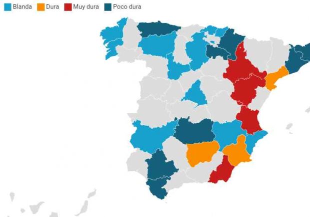 La costa está pintada en colores rojo o naranja, mientras que el interior es de tonos azules. Dependiendo de dónde estemos nos habremos acostumbrado a un agua del grifo más o menos dura, que nada tiene que ver con el sabor, pero si con sus cualidades. La OCU ha querido ofrecer esta información clave para los españoles.