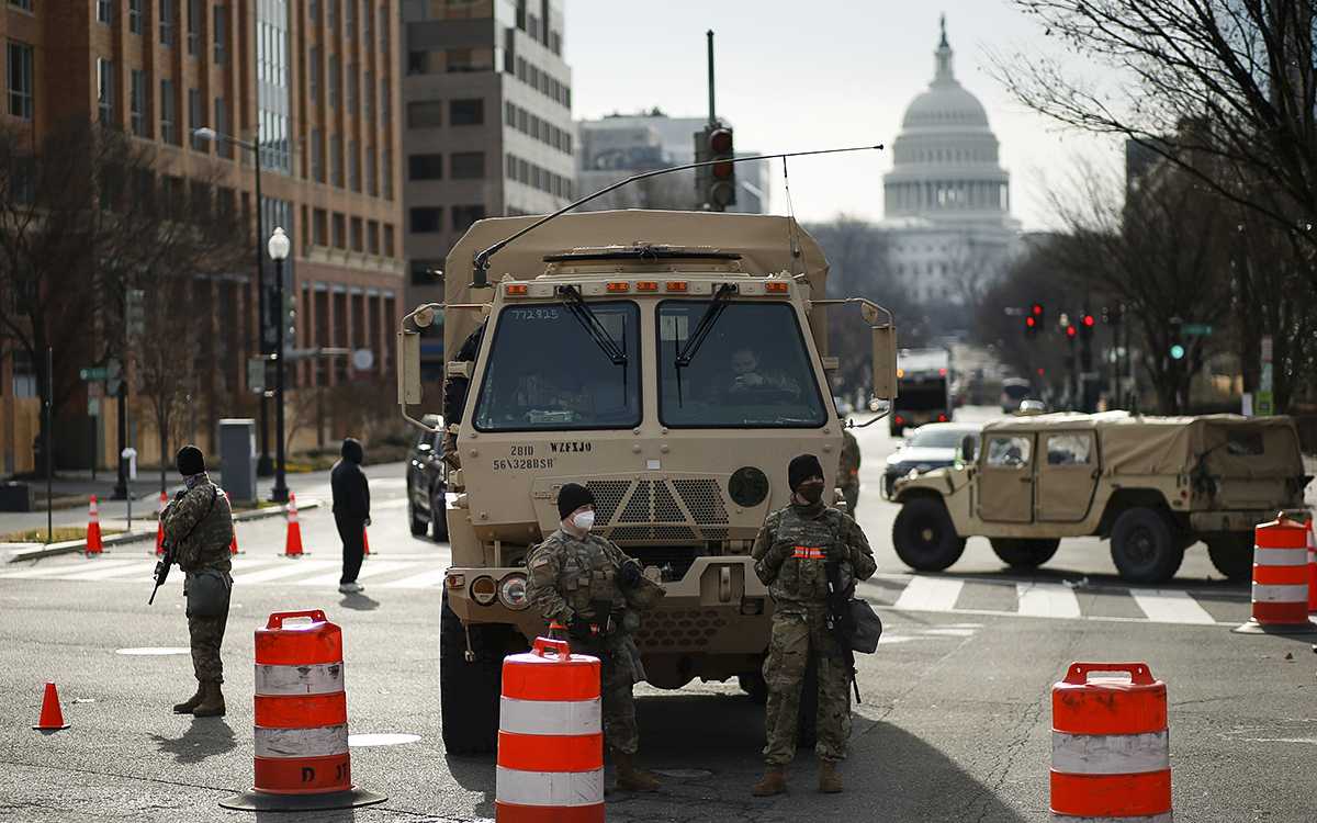 Miembros de la Guardia Nacional aseguran el área cerca del Capitolio ante una posible protesta antes de la toma de posesión del presidente electo de Estados Unidos, Joe Biden. Foto: Reuters.