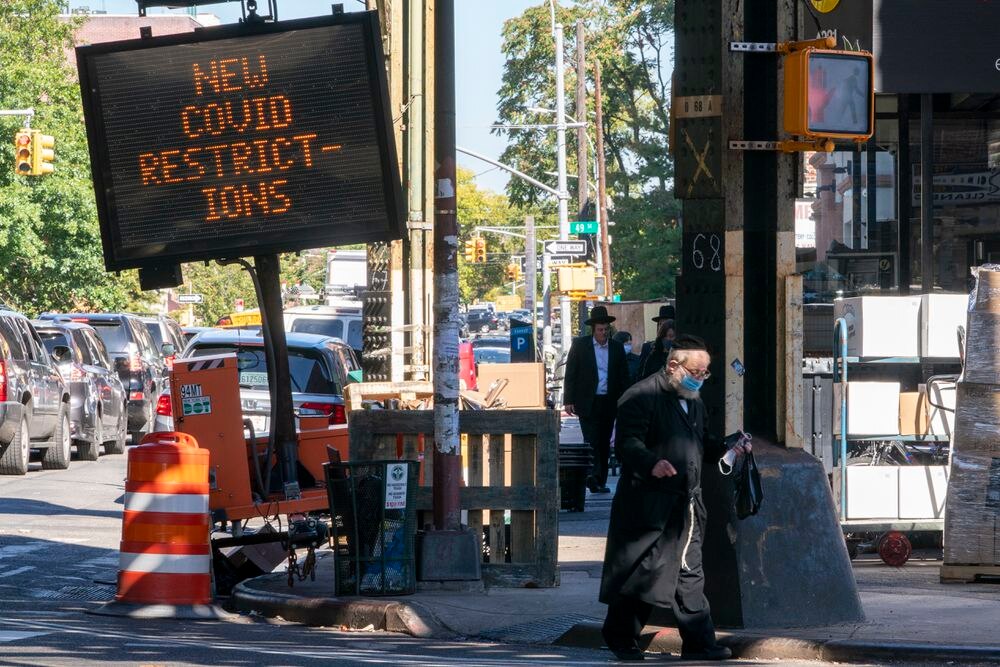 Libre del trazado de tiralíneas que los rascacielos dejan en el cielo de la ciudad, la atmósfera opresiva de Borough Park y sus casitas bajas podría pasar por un rincón del hierosolimitano Mea Sharim, o de Bnei Brak, bastiones ultraortodoxos de Israel: hombres con tirabuzones, levitas negras y filacterias; la viva imagen del recato en las mujeres, con tristes sayas monjiles. Pero aunque la mayor parte de los rótulos estén en hebreo, pese a la presencia de numerosas sinagogas y yeshivás (escuelas talmúdicas), Borough Park es un distrito de Brooklyn y zona roja de la pandemia en Nueva York, con una tasa de positividad que multiplica por cuatro la de la ciudad, de solo el 1%. La tasa de contagios es de 7,1 por 100.000 habitantes en la última semana en la ciudad, mientras en el barrio es el doble. De ahí que las autoridades locales decidieran reintroducir hace tres semanas severas restricciones, como el cierre de colegios y negocios no esenciales, mientras los vecinos siguen a cara descubierta, sin mascarilla, como si lo humano les resultase ajeno.