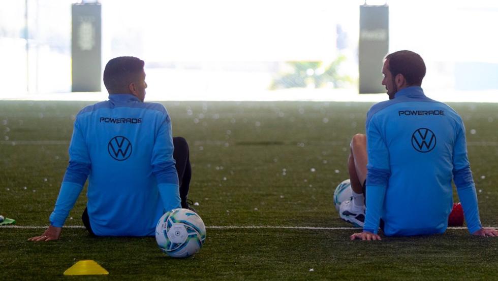 Godín en 2014 en el Camp Nou, y ahora Luis Suárez en Zorrilla, lograron dos tantos que sirvieron para rubricar dos títulos del Atlético. Y ambos compartieron esas vivencias este domingo tras el entrenamiento del combinado charrúa.