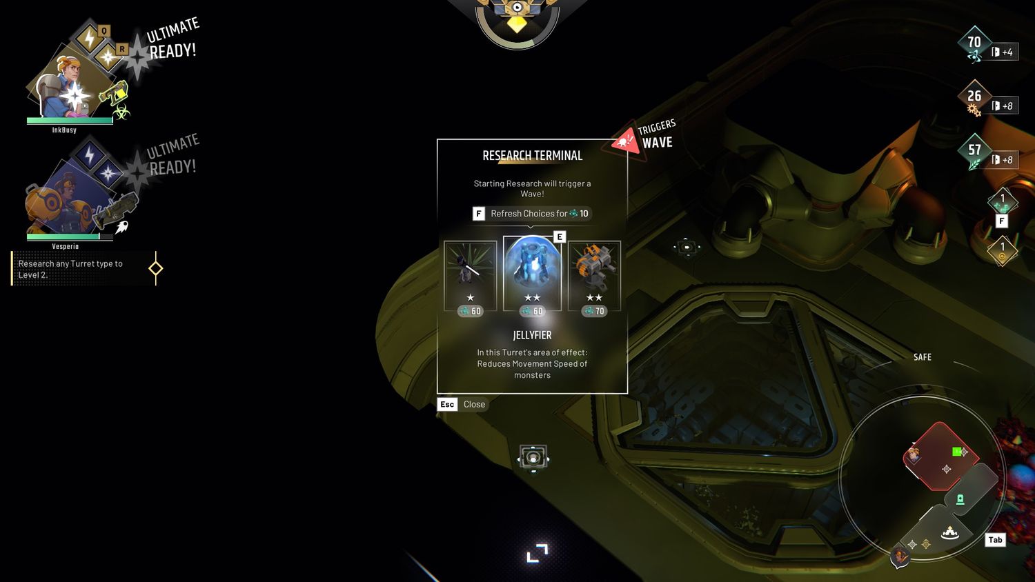 Los jugadores en solitario sin duda tendrán dificultades Mazmorra sin fin, aunque los compañeros de IA pueden aceptar indicaciones de comando simples y emplear tácticas de defensa de carga útil sin capacidades estratégicas complicadas, como actualizar las torretas cuando estén listas. Obtener un tercer ayudante de IA es un beneficio que, de manera confusa, debe desbloquearse con moneda de desecho, una decisión de diseño extrañamente castigadora para los devotos de un solo jugador.