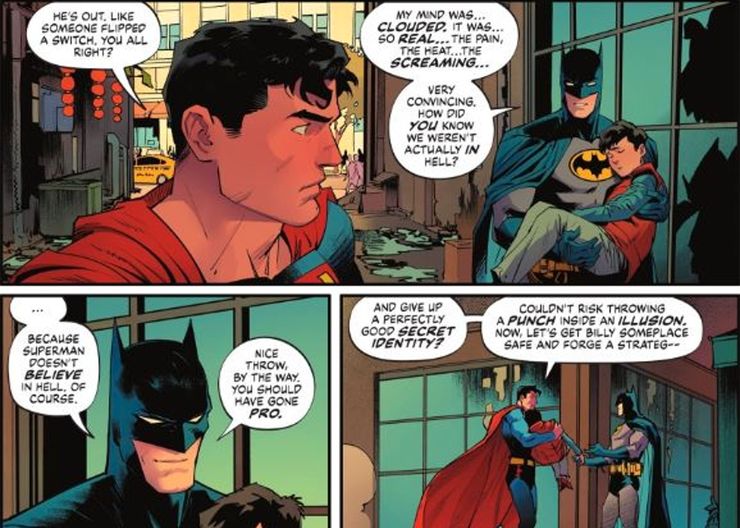En Batman/Superman: Los mejores del mundo #3, escrito por Mark Waid con arte de Dan Mora, Felix Faust atrapa a Superman, Batman y Billy Batson en una versión ilusoria del Infierno. Mientras que Batman está abrumado por la ilusión, Superman está bastante tranquilo en contraste, lo que le permite encontrar dónde se esconde Fausto y poner fin a su magia. Batman se da cuenta después de que la razón por la que Superman pudo mantener la compostura fue porque no cree en el infierno, lo que le permite no dejarse engañar por el truco de Fausto.