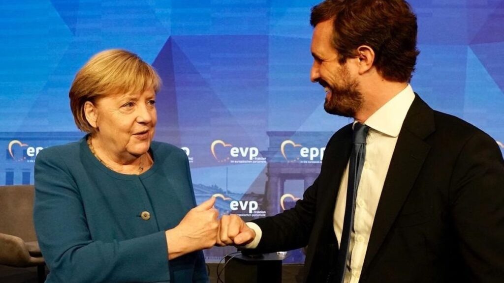 Pablo Casado acudió el jueves a Berlín para participar en un acto de campaña de la CDU alemana, que sirvió de despedida de Angela Merkel para todo el Partido Popular Europeo. En el mitin, Casado denunció con acritud al Ejecutivo español por sus ataques a la independencia del poder judicial, los intentos de politizar el Consejo General del Poder Judicial o las críticas a relevantes sentencias del Constitucional. Y añadió que las instituciones europeas comprendían y respaldaban su dura posición.