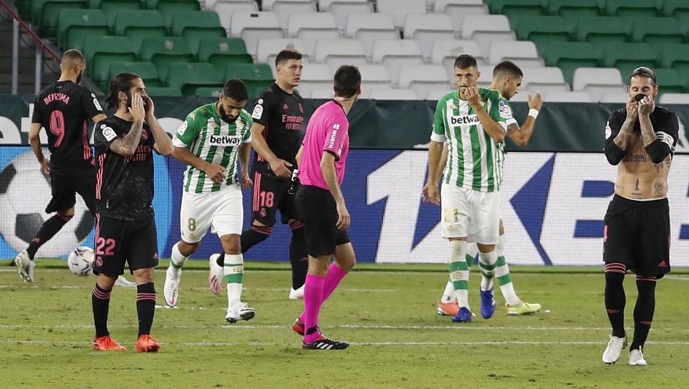Los béticos se quejan de cuatro jugadas clave que determinaron el triunfo del Real Madrid este sábado en el Benito Villamarín ante el Real Betis: un posible penalti no señalado sobre Fekir con 2-1, fuera de juego de Benzema en la jugada del autogol del 2-2 de Emerson, la expulsión del brasileño que llega tras un fuera de juego previo de Jovic o el penalti señalado sobre Bartra a instancias del VAR sin que fuera, en ningún caso, un error claro y manifiesto del árbitro principal como para que la jugada tuviera que ser revisada.
