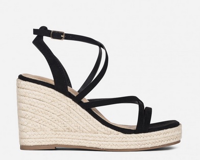 Marypaz ha dado el pistoletazo de salida a las rebajas de verano con descuentos muy interesantes en muchísimas sandalias, como estas cuñas de yute con diseño de tiras cruzadas en el empeine en color negro. Tienen cierre mediante hebilla al tobillo y seguro se convertirán en tu calzado favorito de la temporada.
