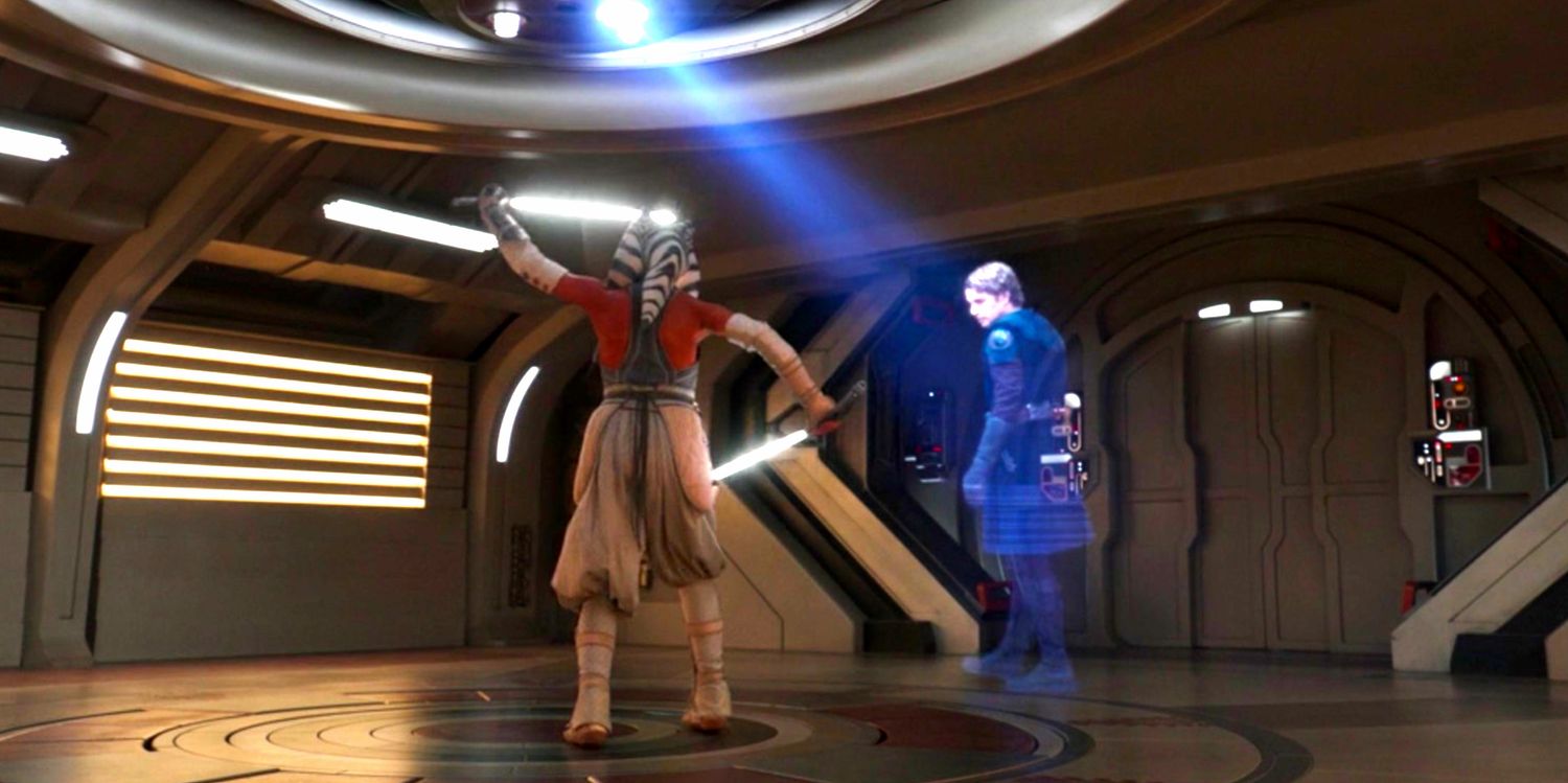 Uno de los detalles más conmovedores de Ahsoka es que Anakin había grabado videos de entrenamiento para que Ahsoka los viera durante las Guerras Clon. Ahsoka los usa para practicar su forma de sable láser de Djem So, o Forma V, en Ahsoka episodio 7. Curiosamente, estos videos se hicieron antes de que Ahsoka comenzara a empuñar dos sables de luz y, por lo tanto, el momento ha revelado que Anakin en realidad se había estado preparando para que Ahsoka aprendiera Djem So con un doble empuñadura durante años antes de que ella realmente lo hiciera. Esto explica por qué una padawan como Ahsoka pudo mantenerse firme en la batalla durante tanto tiempo, especialmente durante la Orden 66. Entrenó para prepararse para sus dos sables de luz con Djem So gracias a estos videos de entrenamiento, y ahora puede continuar fortaleciendo su entrenamiento. .